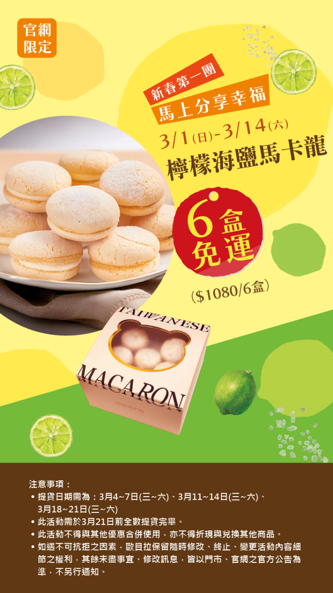 馬上分享幸福 檸檬海鹽馬卡龍6入免運