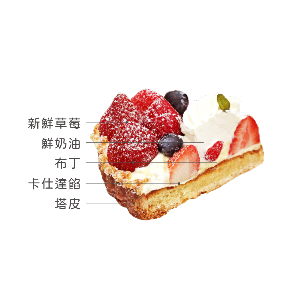 主要成分 / 新鮮草莓、鮮奶油、卡士達餡、塔皮
