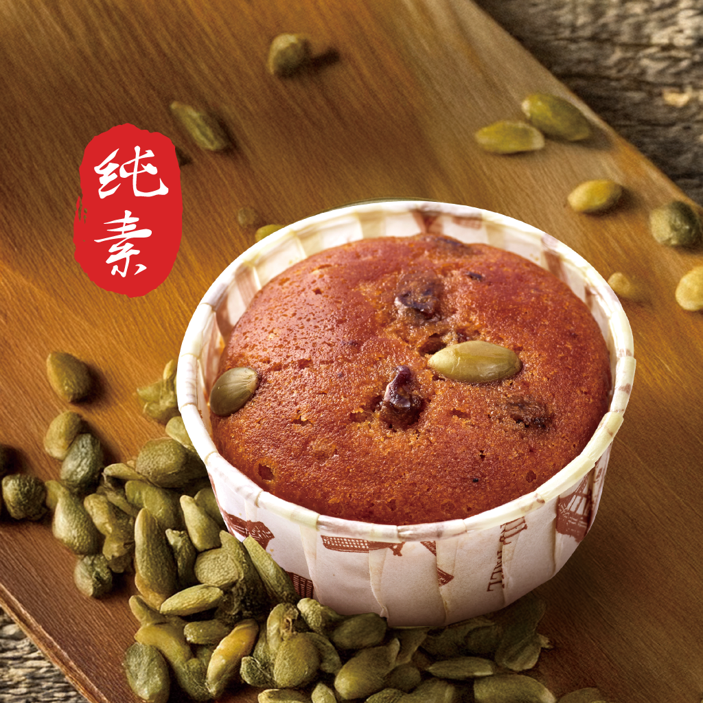 並使用自榨的南瓜籽油取代奶油製作打造可素食安心享用的蛋糕基底。