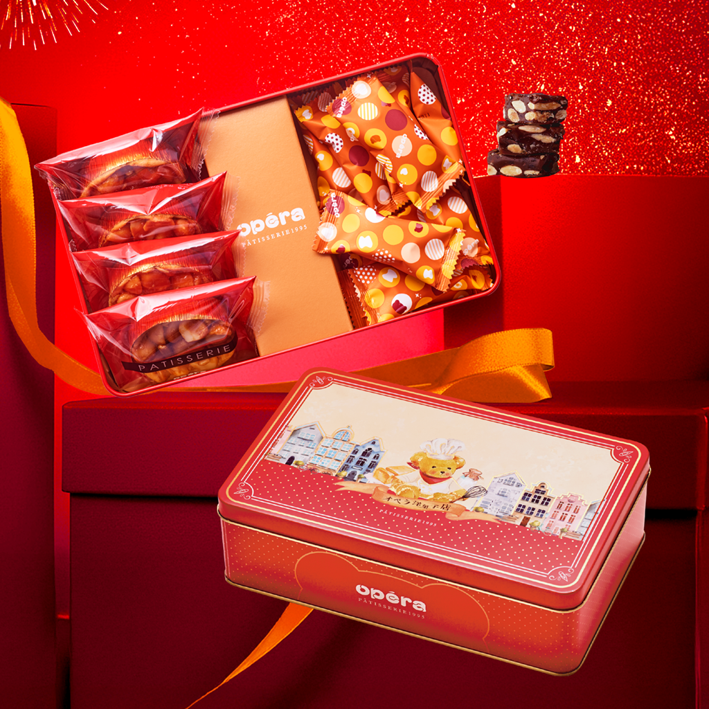 小熊三饗禮盒【紅色款】 今年獨家推出糖果加上招牌夏威夷塔, 新春甜甜蜜蜜的饗宴!趣味可愛馬口鐵盒迎接新春, 不管走春或親友來訪都可一同分享甜蜜迎新年~